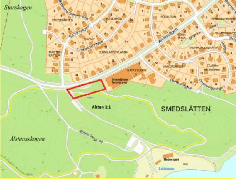 Staden gav 11 december 2024 markanvisning för cirka 50 hyreslägenheter i Stockholmshus i Smedslätten längs med Alviksvägen intill Smedslättens tennishall och invid det nyinrättande naturreservatet Ålstensskogen-Storskogen. Då Stadsbyggnadskontoret i november 2025 beslutade inrätta naturreservatet flyttades gränsen för reservatet för att möjliggöra att dessa huse byggs. Bygget betyder att den nuvarande parkmarken med elljusspår inom föreslaget naturreservat Ålstensskogen-Storskogen och ledningsomläggning behöver flyttas.