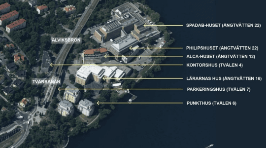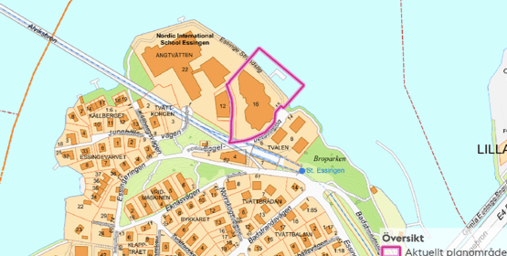 Staden planerar rivning av kontorsfastigheterna intill Tvärbanans hållplats på Stora Essingen för att uppföra punkthus med ca 200 bostäder. Efter Samrådet i december 2024 har många boende i grannskapet inkommit med klagomål avseende att förslaget är för tätt byggda hus som dessutom kommer mycket nära grannarna. Många lägenheten i de existerande bostadshusen får en husfasad bara ca 15 meter från sina fönster.