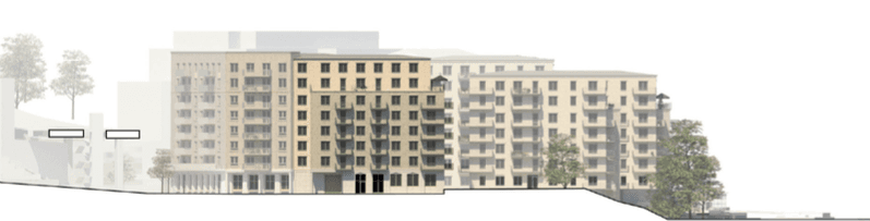 Vi instämmer i att området bör bebyggas med bostadshus men skalan måste minskas avsevärt och speciellt i de delar som gränsar till intilliggande brf måste husen i storlek och placering anpassas så att de inte stör grannarna. Om det görs rätt, vilket inte är fallet just i detta förslag, kan området bli en idyll mellan tvärbana och vatten. Se till att dra nytta av den fina tomten och bygg vackert och i mänsklig skala istället för vad som gäller i det nuvarande förslaget. Om det sker är vi positiva till att området omvandlas. Dock vill vi påtala de många synpunkter som inkommit avseende rivning av kv. Ångtvätten 16 och som föreslagits av många grannar att i stället för att riva låta byggnaden stå kvar och anpassa den till ny användning.