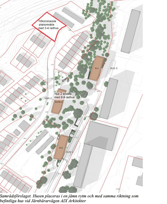 Förtätning med lägenheter och radhus vid Järnbärarvägen