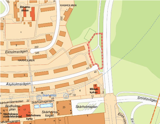 Skärholmens islamiska kulturförening/Islamiska Stiftelsen i Skärholmen har sedan före 2008 planerat bygga en av de största moskéer som någonsin byggts i Skandinavien och samlar in medel för bygget. Moskékomplex som beräknas kosta runt 80 miljoner kronor blir på 3.000 kvadratmeter och byggs på en tomt invid Skärholmsvägen (2008-02230) strax öster om Skärholmens centrum. Den nya moskén planeras att infogas i bergssluttningen, med två suterrängvåningar mot Skärholmsvägen. Byggnaden är uppdelad i två delar. Den södra delen innehåller en sal för bön vriden mot Mecka som kröns av en kupol. Den norra delen, som i sin tur är uppdelad i flera delvolymer, innehåller övriga verksamheter. Norr om byggnaden byggs ett angöringstorg med cirka 20 parkeringsplatser. Platsen var tidigare obebyggd och bestod till hälften av en bergssluttning och hälften av parkmark med öppna gräsytor och gång- och cykelvägar. Staden bidrar med sammantaget 13,3 miljoner kronor för kringliggande markarbeten.